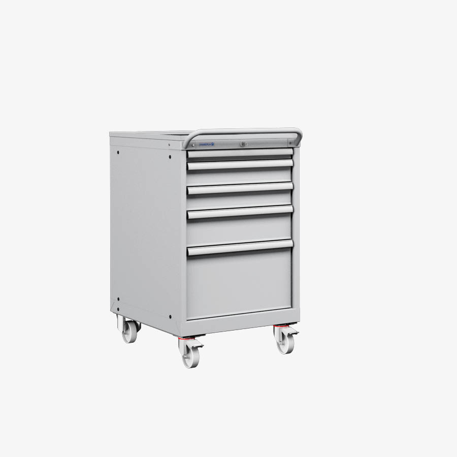 Vershweißte Qualitätsstahlblechkonstruktion mit Einzelauszugssperre, Zentrales Zylinderschloss für alle Schubladen inklusive 2 Schlüssel.