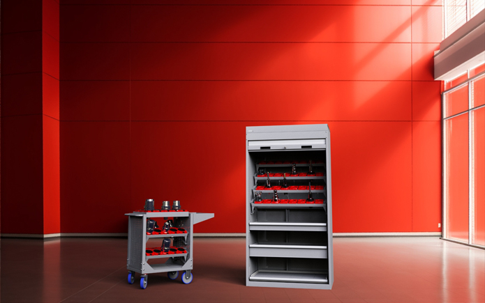Para la industria mecánica ofrecemos soluciones fijas y móviles para portaherramientas CNC, como armarios, estantes y carros. Los cuadros de inserción CNC le permiten almacenar herramientas mejorando la gestión del espacio y facilitando su uso. Estos marcos no sólo se pueden montar en carros, sino que se pueden insertar en nuestros gabinetes y estantes de una manera totalmente flexible y personalizada.