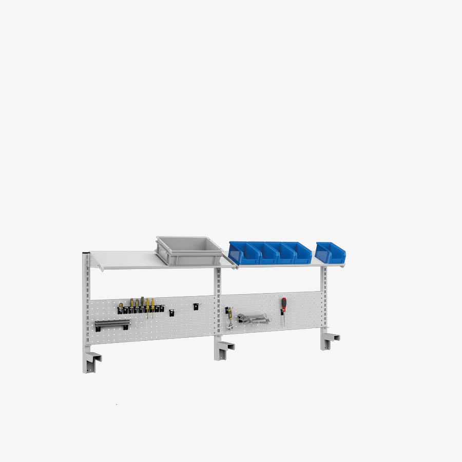 Montanti profilati di acciaio e forati sui quattro lati con passo 38 mm per agganciare senza l'uso di viti dei componenti della pareti attrezzate. Disponibili in 4 altezze diverse e supportano fino a 4 pannelli in altezza.