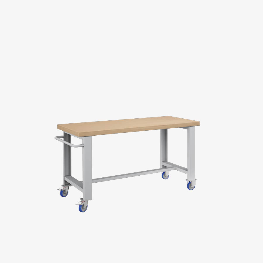 Banco da lavoro in multistrato di faggio. Possibilità di configurarlo con copertura di acciaio rivestita in gomma antiolio.